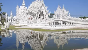 Dia 6: CHIANG RAI e CHIANG MAICafé da manhã. Saída até o famoso Triângulo de ouro, ponto de encontro do Laos, Birmânia e Tailândia, e conhecido pela população local como “Sop Ruak”. Em seguida, visita à Casa do Ópio. Almoço em restaurante local. À tarde, visitaremos Wat Rong Kun, o Templo Branco, que simboliza a pureza do budismo com sua cor branca brilhante e decorações espelhadas. Mais tarde, traslado até Chiang Mai passando da bela paisagem da selva tropical. Chegada em Chiang Mai. Jantar e Acomodação.